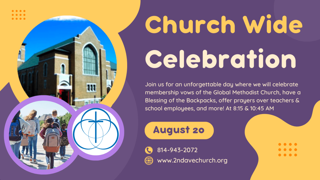 We will have our Blessing of the Backpacks (remind your kids to bring theirs!), pray over teachers, school employees and church leadership, and take the Global Methodist Church membership vows. We will also be blessed with special music at each service.