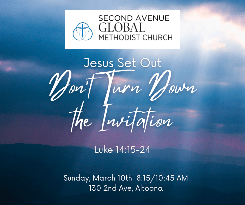 Join us on Sunday to continue our Lenten series “Jesus Set Out” with this week’s message. Don’t turn down the invitation. Services at 8:15 & 10:45 AM. (Staffed nursery and Junior Church during the 10:45 service.)