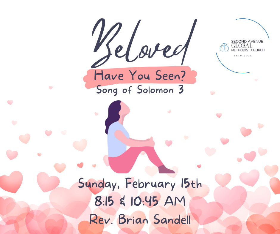 We hope to see you this Sunday as we continue our series, “Beloved.” Pastor Brian will share the message, “Have You Seen?” from Song of Solomon 3. Services are at 8:15 & 10:45 a.m. Please note: Next Sunday, February 22, we will have one combined service at 10:00 a.m. There will be no Sunday School that day. The nursery will be staffed, and Jr. Church will be available. We look forward to worshiping together!